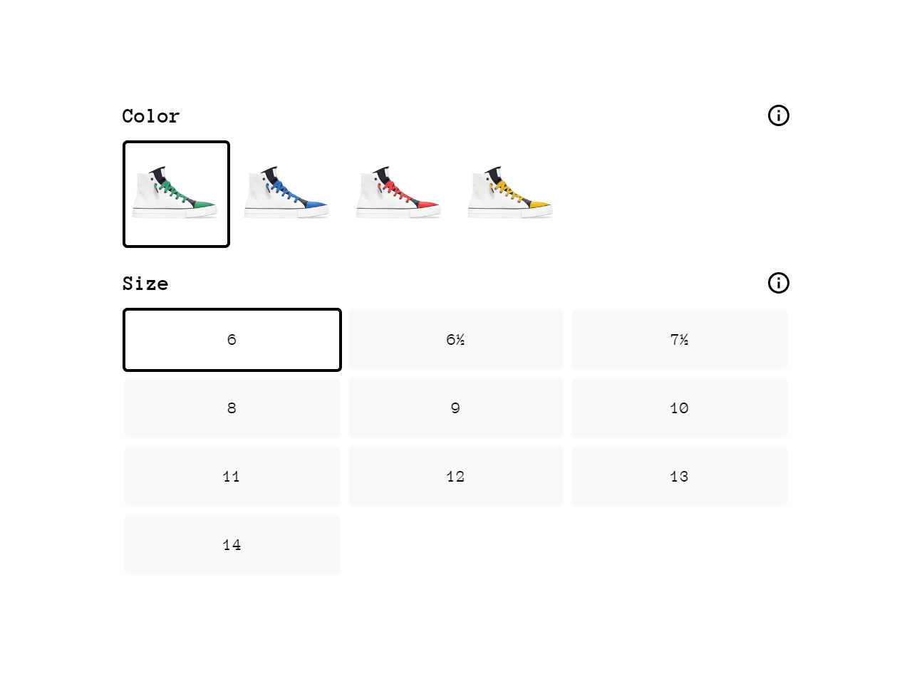 Ultimate customer experience for showing product options as color swatches or image swatches.