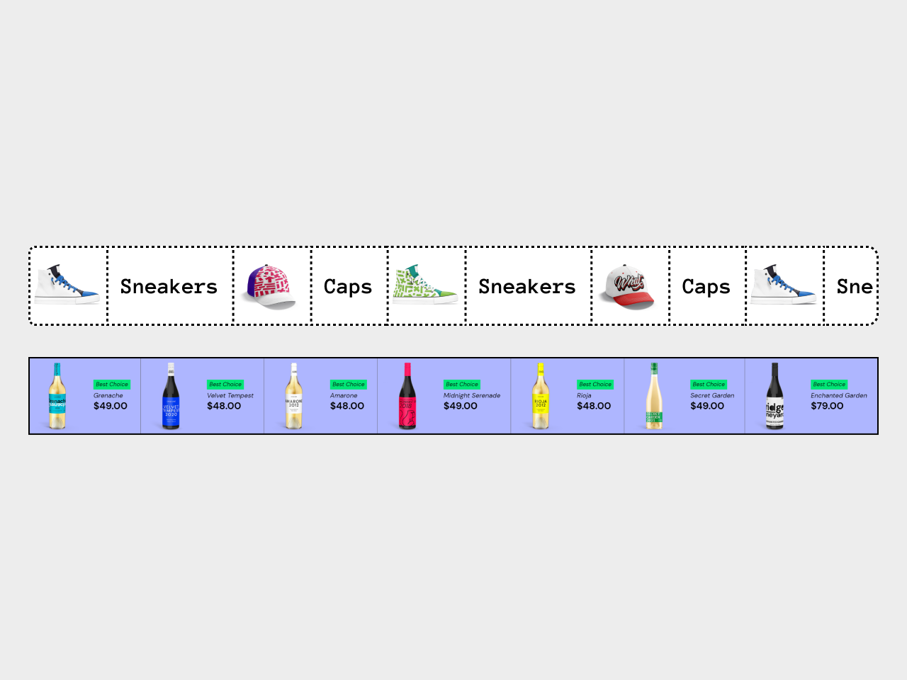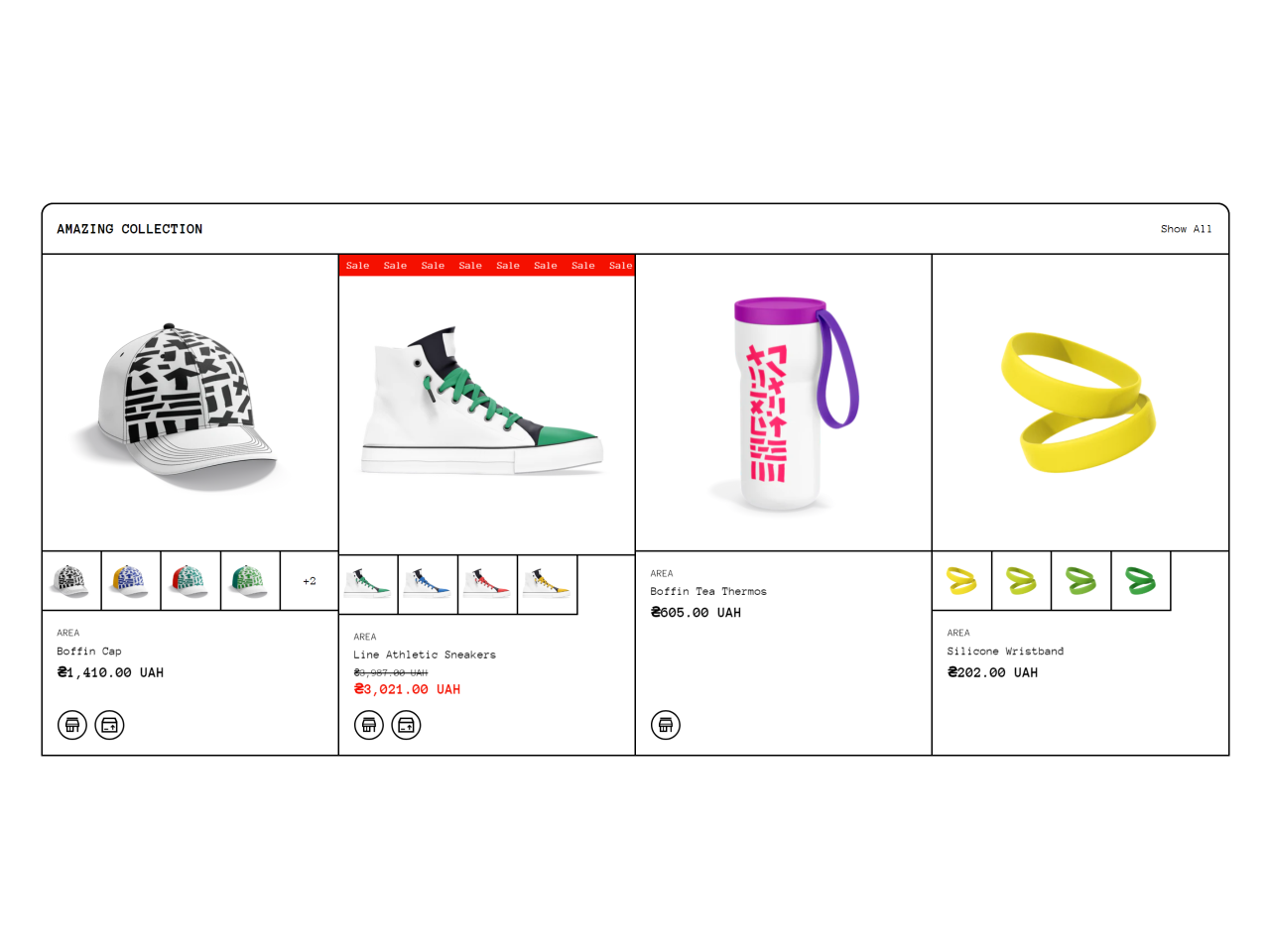 This section displays small product tiles to showcase a maximum number of products in limited space.