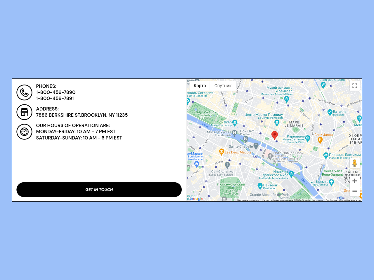 Must have location section with the map and descriptions.