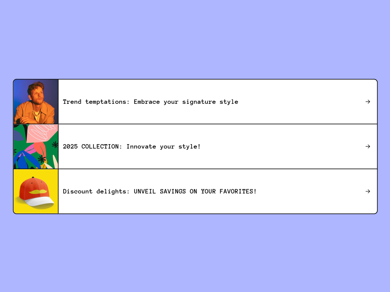 Texts, images, products, prices. Announce in a dynamic and eye-catching way or highlight your best products.